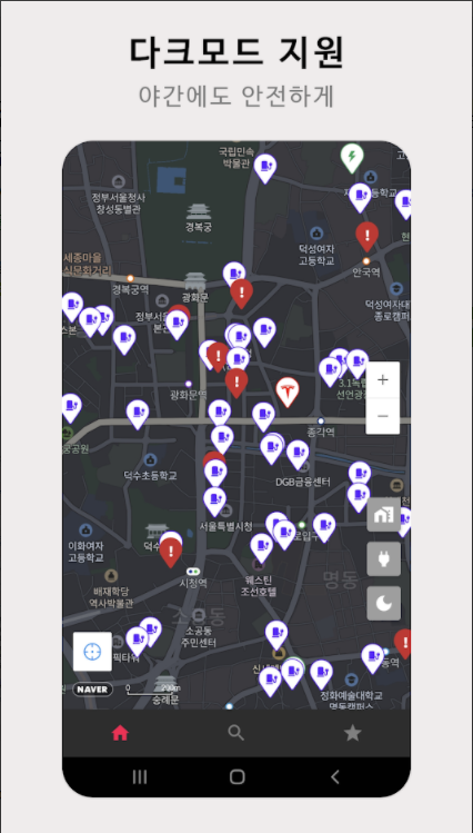 오직 편리하게 충전가능 상태, 위치 네비 연동, 검색 등 충전소 이용에 필요한 내용만 심플하게 담고있습니다.