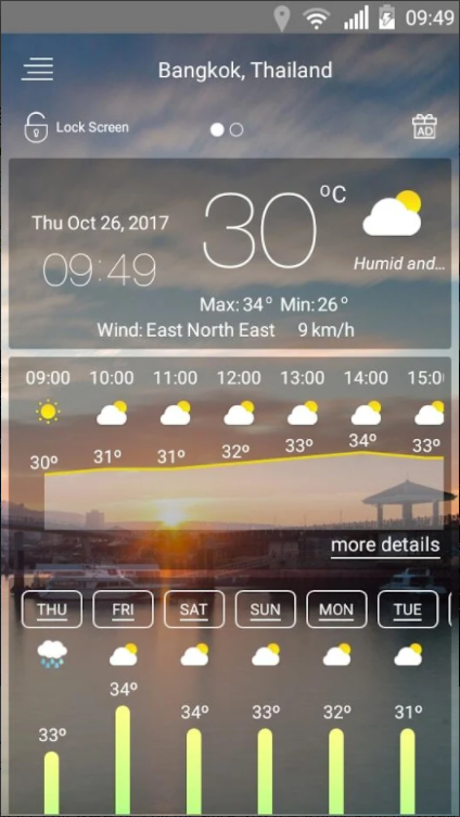 날씨 채널의 해당 일기예보 앱은 일일날씨, 시간별, 주간별 일기예보 및 월간 예보를 제공하고 또한 각 주간 여행 일기 예보 제공 및 기상 조건과 바람을 예측하고 있습니다.