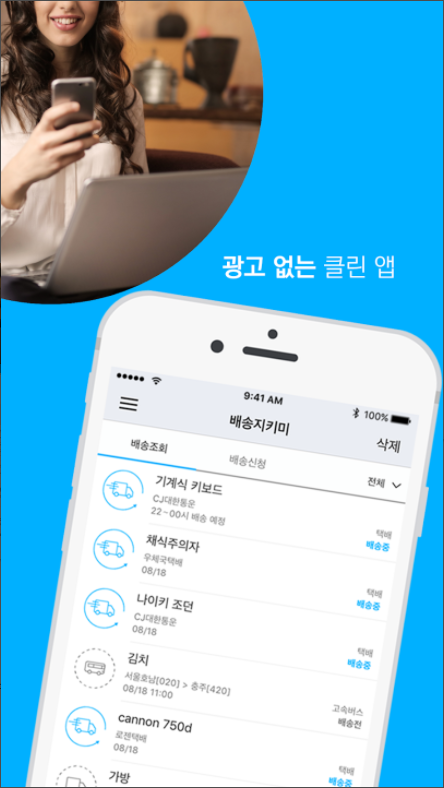광고도 없고고 각기 다른 택배사에서 오는 택배들을 한눈에 볼 수 있고 화면도 깔끔해 매우 만족합니다