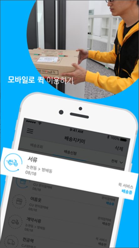 모바일을 통해 퀵 접수 및 실시간 배송 추적이 가능