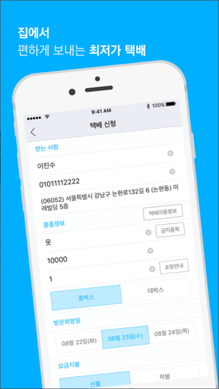 원하는 시간, 원하는 장소에서 편하게 택배 신청을 이용