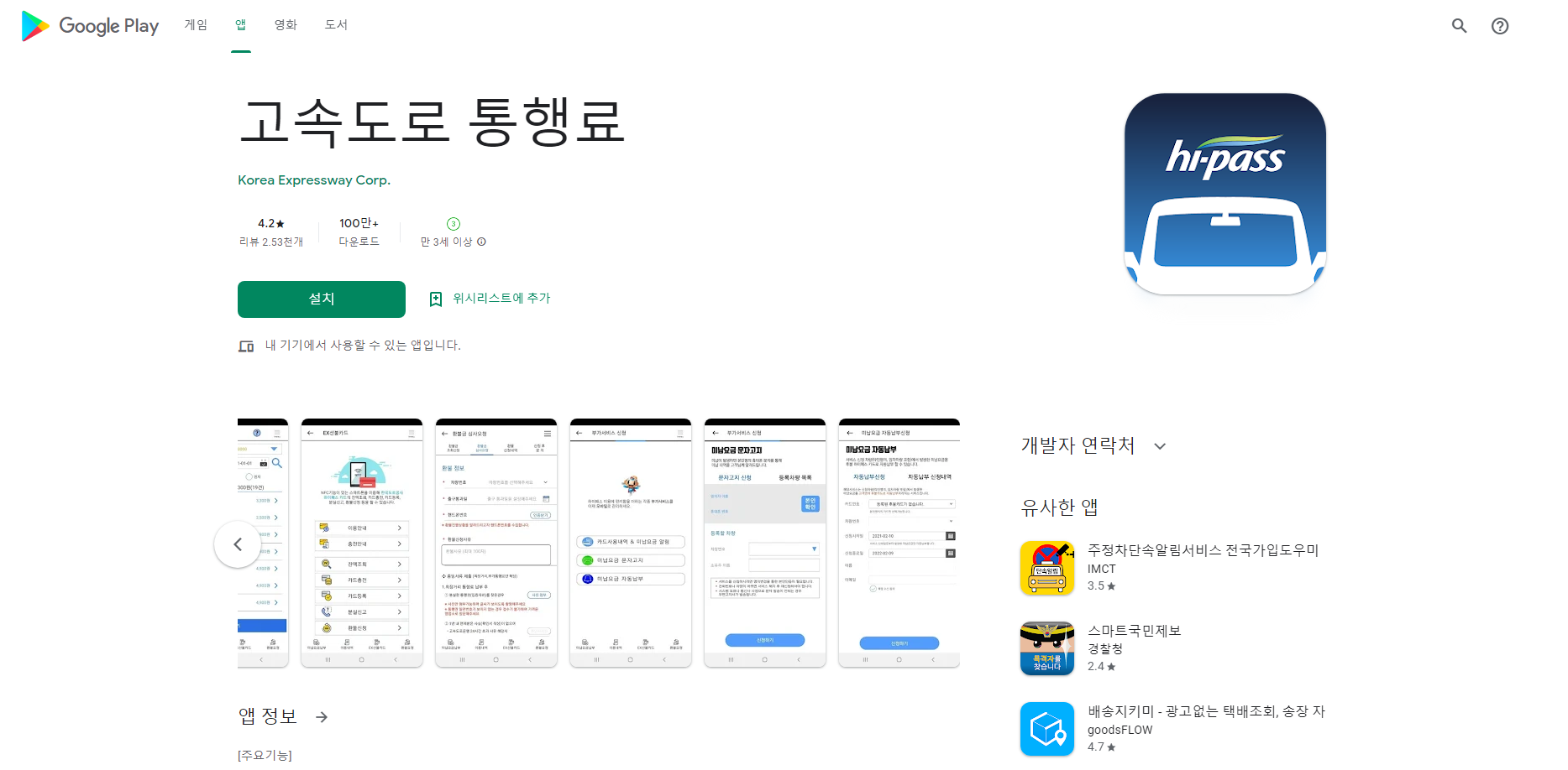 리뷰를 보면, 통행료 미납요금 납입할려고 처음 깔아봤는데 아주 편하네요~ 그동안 어렵게 영업소가서 납부했는데. 앞으로는 혹여나 미납발생하면 잘 사용하겠읍니다. 라는 내용이 있을만큼 유용하게 활용 가능한 어플입니다.
