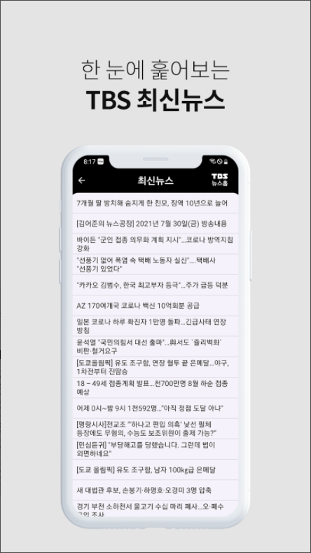TBS 교통방송의 방송과 뉴스 및 생활정보를 스마트폰 앱 및 모바일 웹(m.tbs.seoul.kr)에서 도 만나실 수 있습니다.