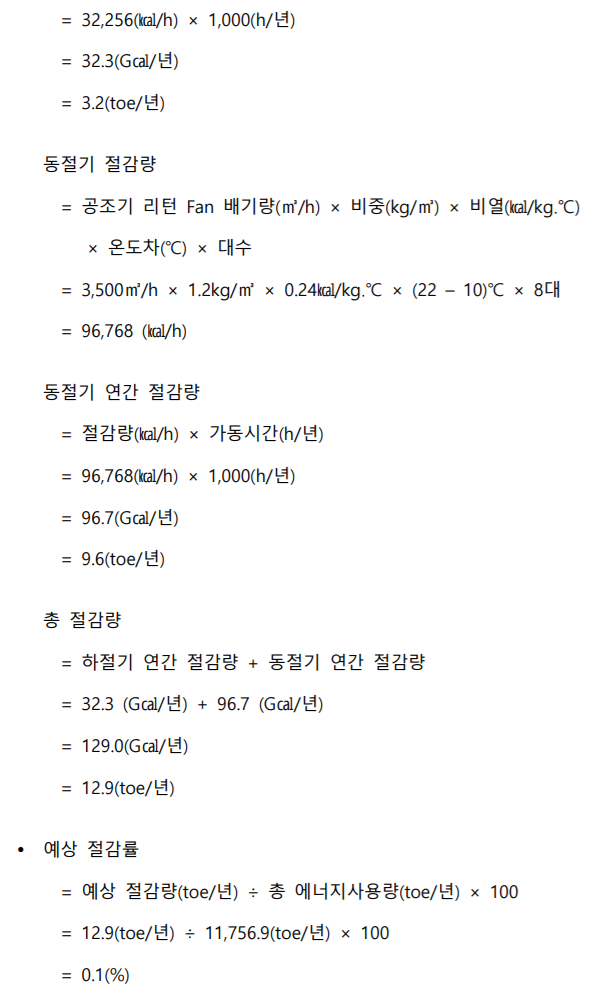 열 교환 없이 외부로 버려지는 냉각열이나 난방열을 현재 설치되어 있는 회전형 전열 교환기를 히트파이프형 전열교환기로 교체함으로서 열량을 회수하여 연료 사용량을 절감할 수 있다.