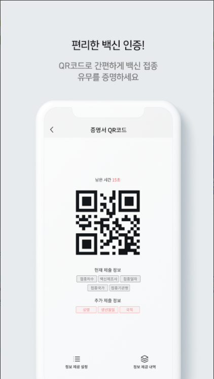 - 사용자의 선택에 따라 백신 접종 사실 이외의 다양한 추가 정보를 상대방에게 제공할 수 있습니다.